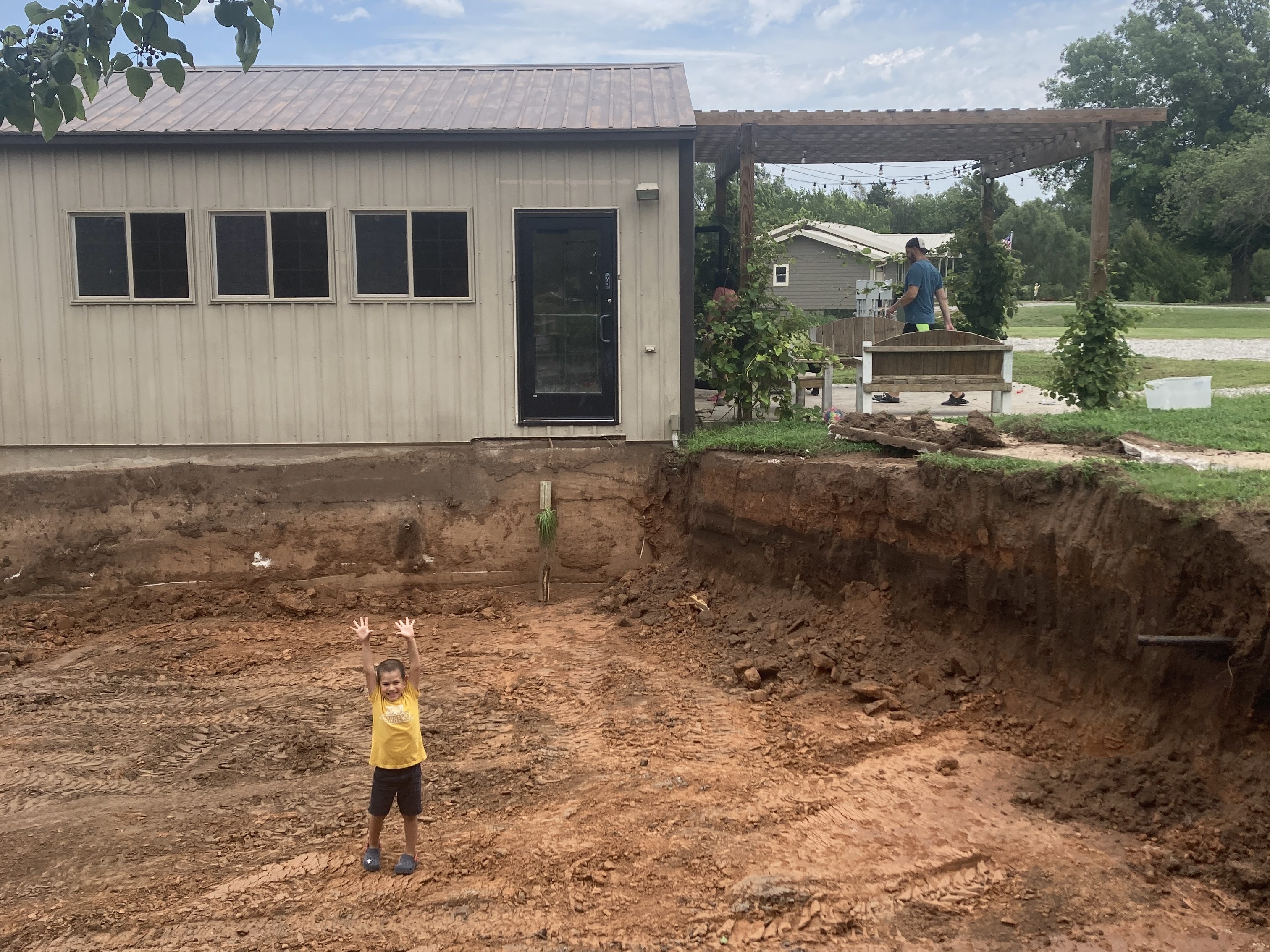 More ceramic compound updates, an entire hill was removed from the side of the studio to make way for a kiln pad, staircase and patio! Seen below is the Shue’s son, Xavi in the middle of the big ole cater.