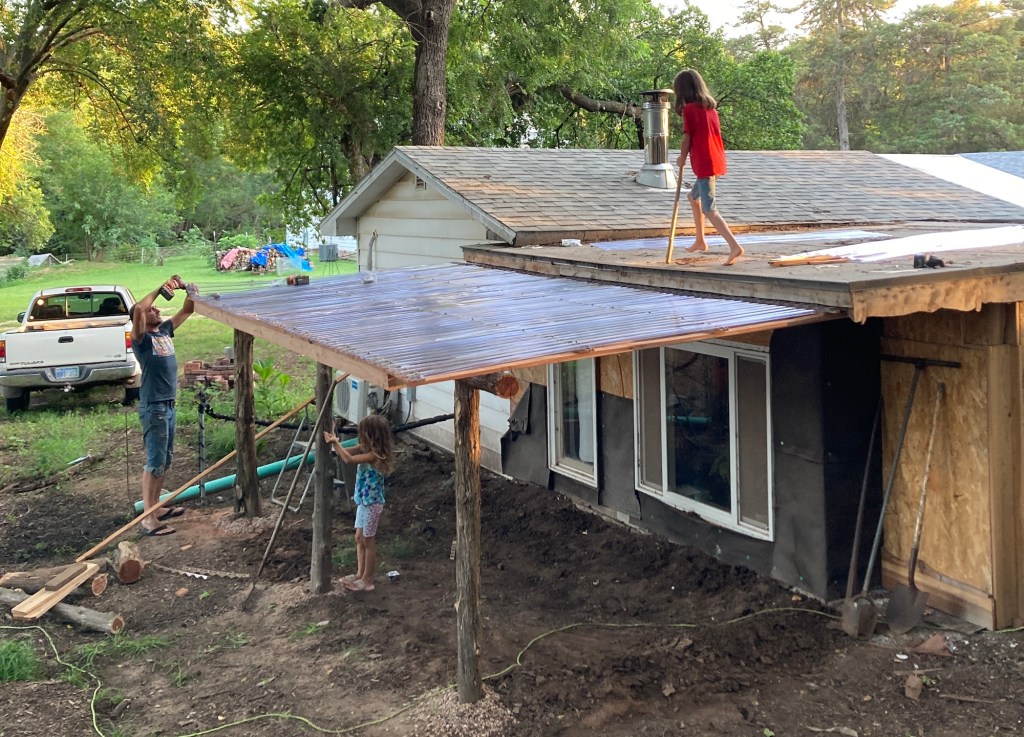 Going over to Laird Woodland Farm where I work several evenings a week. Last time Beau and I had just finished putting posts in the ground. I am happy to report that the structure is finished, with clear plastic ridge roofing over the whole thing. Now water will runoff the roof, away from the main house, helping prevent mildew around the foundation of the Davidson’s home. And the underneath will also double as dry storage!