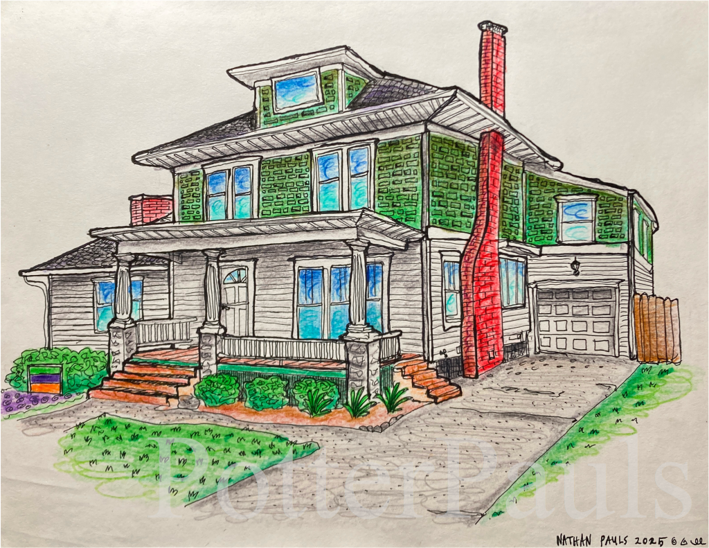 Hello! Thank you for your interest in my house portraits. My style is cartoony and I like to take some liberty with perspective and line, while still providing an accurate depiction of the house.